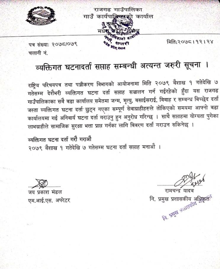 व्यक्तिगत घटनादर्ता सप्ताह सम्वन्धि अत्यन्त जरुरी सूचना।